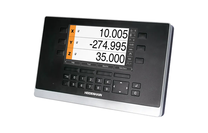 Designed for the fast and reliable positioning of manually-operated machine tools, this digital readout features a 7-inch touchscreen with an intuitive interface, supports three axes with 1 VPP, 11 μAPP, and EnDat 2.2 protocols, and includes switching functions for simple automated tasks.